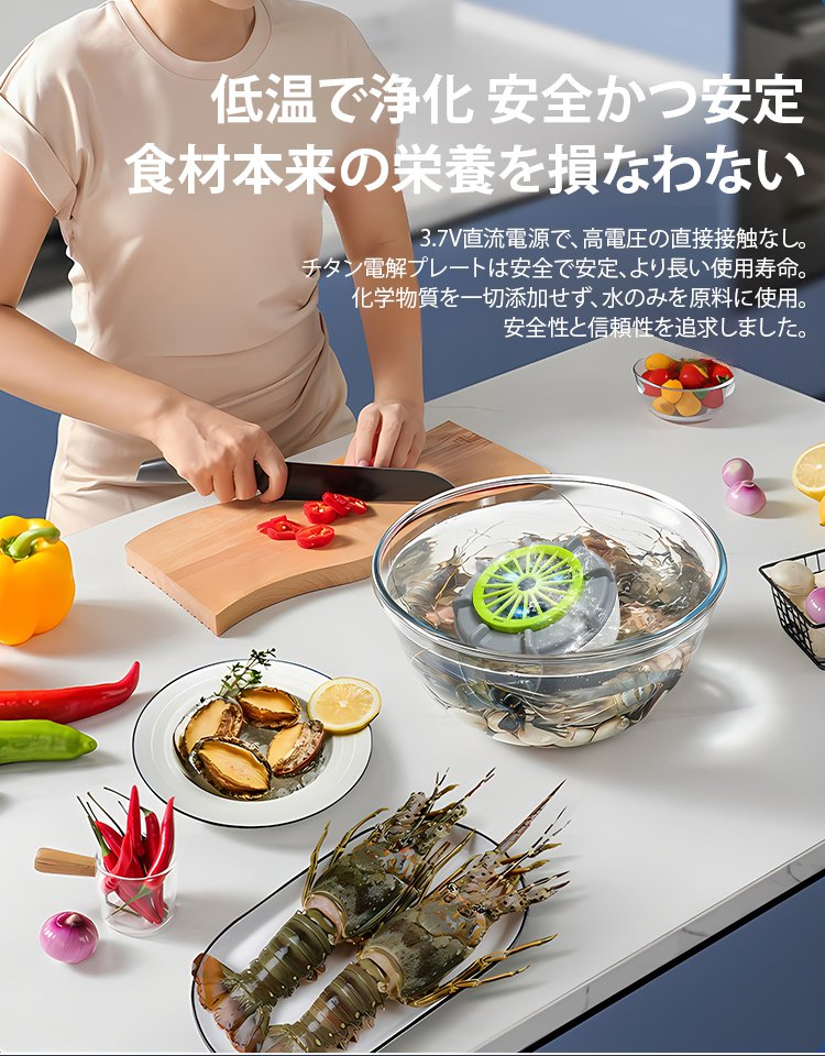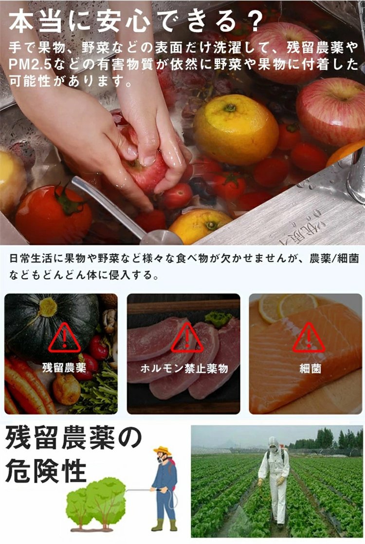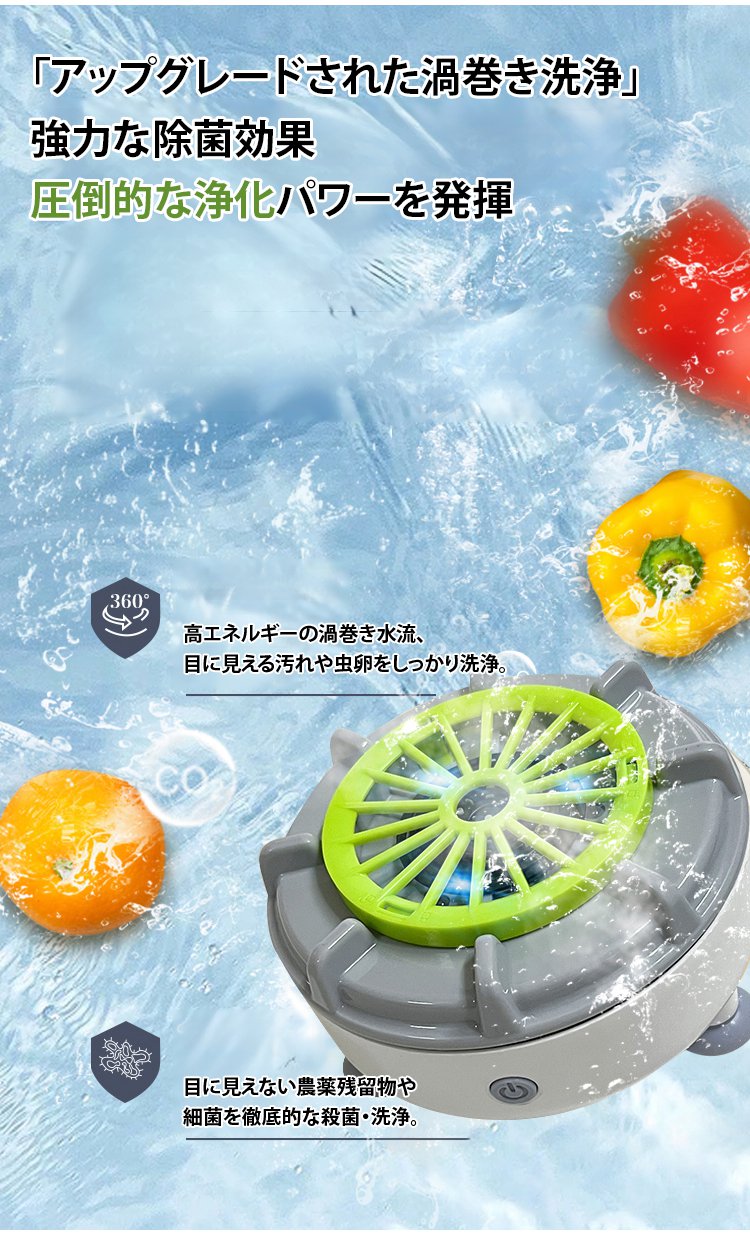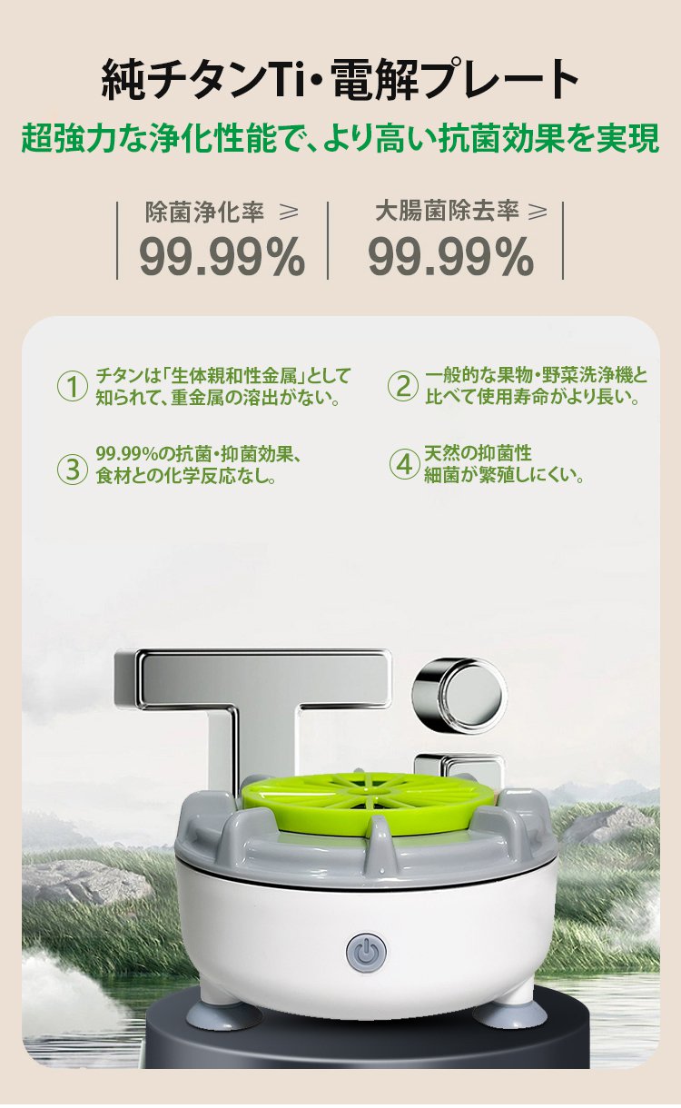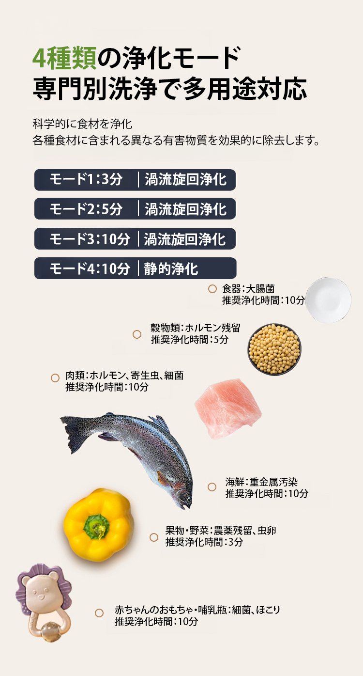 4段階モードで野菜・お肉・食器・ベビー用品も安心。たった10分で99.99%の汚れと菌を除去します。